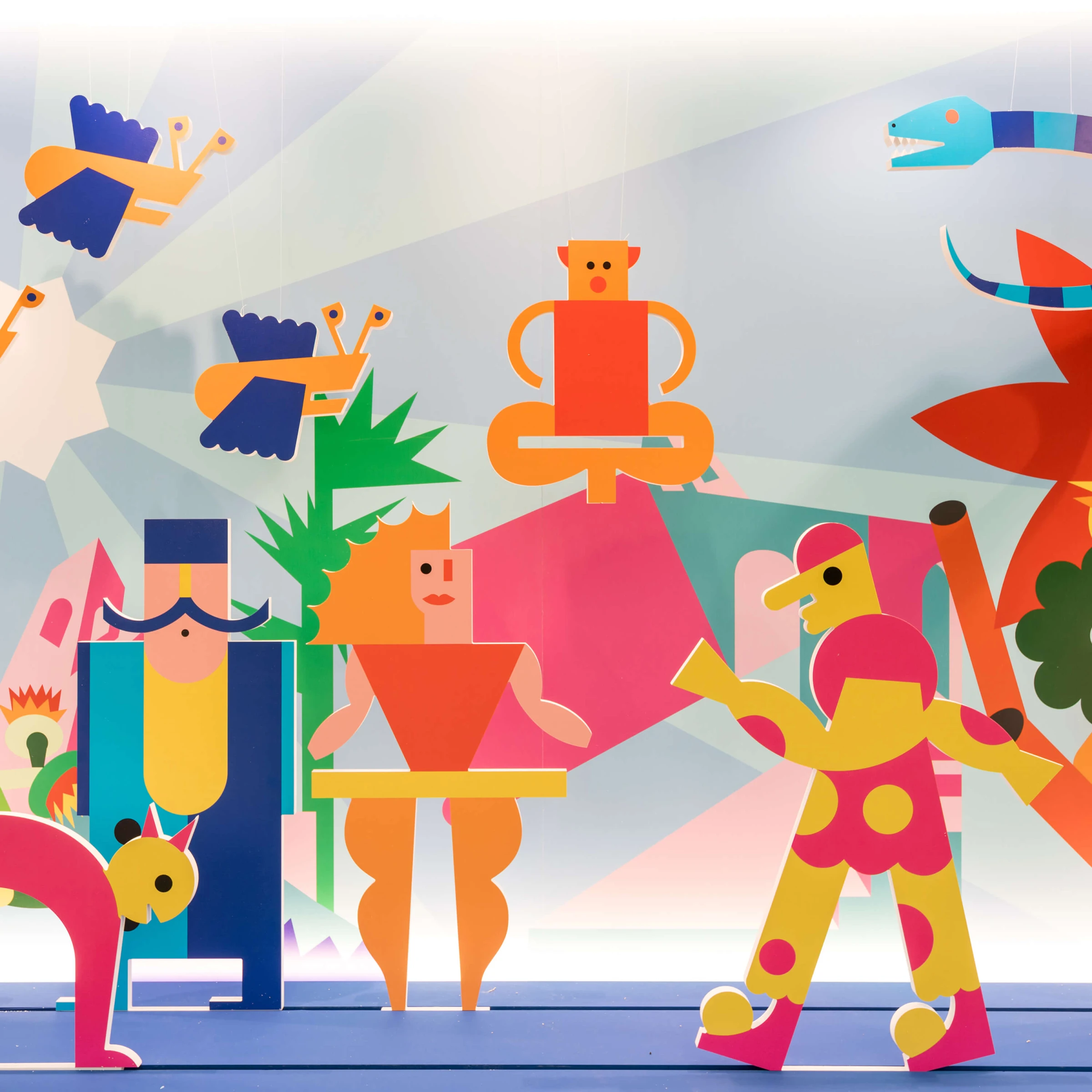 Rather than adopting a naïve or decorative tone, we worked on lightness as a design value — echoing the approach of designers such as Bruno Munari, Enzo Mari and Ettore Sottsass. Typography, colour and composition were carefully calibrated to support the narrative without overpowering the exhibition design by Stefano Giovannoni.